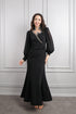 فستان بتفاصيل كريستالية واكمام واسعة وزينة ازرار -اسود