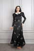 فستان ساتان بتطريزات خرزية وحزام عالخصر -اسود