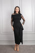 فستان بتصميم ياقة مائلة باكمام شفافة وتفاصيل دانتيل -اسود