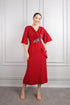 فستان ميدي باكمام واسعة وتطريزات خرزية مقاس كبير -احمر