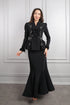 طقم تنورة وجاكيت بزينة فيونكة وتطريزات خرزية -اسود