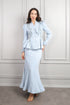 طقم تنورة وجاكيت بزينة فيونكة وتطريزات خرزية -ازرق