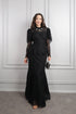 طقم دانتيل خناقي بتطريزات خرزية واكمام شفافة -اسود