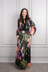 فستان بنقشات زهور وتفاصيل خرزية مقاس كبير -اسود