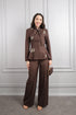 طقم بنطال وبلوزة بتطريزات خرزية وتفصيل ربط عالياقة -بني