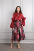 طقم تنورة وبلوزة بزينة ورود وحزام عالخصر -عودي