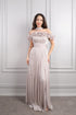 فستان سهرة مكشوف الاكتاف بتفاصيل كشكشة مع شال -بيج