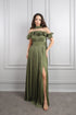 فستان سهرة مكشوف الاكتاف بتفاصيل كشكشة مع شال -زيتي