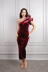 فستان سهرة ميدي مخملي بكتف واحد مطرز بالفصوص -عودي