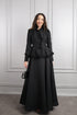 طقم تنورة وجاكست بتفاصيل كشكشة وتطريزات خرزية مع اكسسوار شنطة -اسود