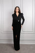 فستان مخملي مزين بدانتيل وبروش كريستالي مقاس كبير -اسود