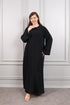 عباية بياقة دائرية بتطريزات خرزية مقاس كبير -اسود