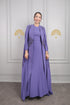 تمّ تنسيق فستاننا ذو الياقة المستديرة والأكمام الطويلة بحزام قابل للفك والتركيب يحدد الخصر ويضفي توازنًا على التصميم. ويبرز الطقم بشكل لافت مع العباءة المصمَّمة على شكل رداء، والمزدانة بالخيوط والخرز لتضفي أناقةً فائقة. إنّ هذا الطقم الكامل طويل الطول خيارٌ مثالي لمناسباتكم الخاصّة، إذ يجمع بين الرصانة والفخامة في آنٍ واحد.