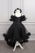 فستان اطفال مكشوف الاكتاف بذيل وكشكشة -اسود