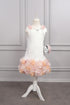 فستان اطفال بكريستالات في الياقة وتفاصيل ورود -سكري