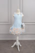 فستان اطفال بكريستالات في الياقة وتفاصيل ورود -ازرق-وردي