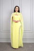 فستان سهرة سترابلس بتطريزات كريستالية و وشاح في العنق -اصفر