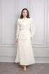 طقم انثوي انيق يجمع بين الكلاسيكية واللمسات الرومانسية، يتكوّن من بلوزة بياقة اطفال مزينة بتطريز لؤلؤية وأزرار أمامية مع فيونكة رقيقة، وأكمام منفوشة بتفاصيل كشكشة تضفي لمسة ناعمة أنثوية. التنورة مزودة بحزام مزخرف بأزرار لؤلؤية، بقصة مريحة ومبطنة بالكامل. القماش الدانتيل الفاخر بدرجة لون طبيعية يمنح الطقم رقيًّا وخصوصية، مثالي للمناسبات الرسمية، الأفراح، والأعياد.