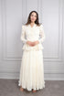 تم تصميم الجاكيت بالكامل بقماش الدانتيل مزين بازرار وحبل يشبه الحزام عالخصر, لاضفاء مظهر جميل وراقي. يكتمل الطقم بالتنورة الشيفون المصمم بتكسيرات ليضفي لمسة انثوية ملفتة. اختياركم لهذا الطقم في مناسباتكم الخاصة او الفعاليات يعد خياراً مثالياً لكم.