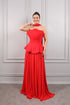 فستان سهرة سترابلس بتفاصيل كورسيه وتنورة شيفون -احمر