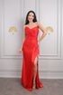 فستان سهرة سترابلس شيفون بفتحة جانبية- احمر