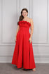 فستان سهرة سترابلس بتفاصيل زهور -احمر