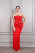 فستان سهرة سترابلس بفيونكة عالخصر -احمر