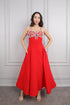فستان سهرة ميدي بحمالات رفيعة بتطريزات كريستالية -احمر