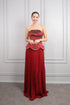 فستان سهرة سترابلس مطرز بالخرز واللؤلؤ بتنورة تكسيرات -عودي