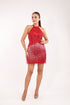 فستان سهرة قصير بتطريز بالخرز والترتر -احمر