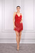 فستان سهرة قصير بتطريز من الخرز والترتر وحواف بالخيوط اللامعة من "المجموعة الخاصة" -احمر