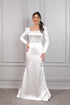 فستان سهرة ساتان بياقة مربعة وحزام عالخصر -ابيض