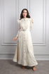 فستان ساتان بتطريزات خرزية وحزام عالخصر -بيج