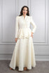 طقم أنيق بياقة عالية وتطريز خرزي دقيق يضفي لمسة فاخرة ورقي على الإطلالة. حزام الخصر يبرز القوام بشكل أنثوي، بينما تمنح التنورة الطويلة تصميمًا انسيابيًا وأنيقًا. خيار مثالي للمناسبات الخاصة، الاجتماعات الرسمية أو أي مناسبة تتطلب إطلالة متألقة وعصرية.