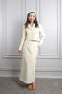 طقم تنورة وجاكيت بتطريزات خرزية واكسسوار عالشعر -بيج