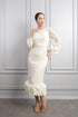 فستان ميدي ساتان بتفاصيل كشكشة عالاكمام والتنورة -بيج