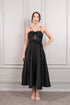 فستان سهرة ميدي بحمالات رفيعة وتفاصيل طبقات -اسود