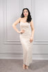 فستان سهرة سترابلس مطرز باللؤلؤ -بيج