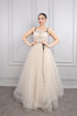 فستان سهرة تول منقط بحمالات رفيعة -بيج