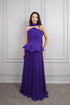 تم تصميم فستان السهرة بدون حمالات ليهبط بشكل واسع من الخصر إلى الأسفل باستخدام قماش الشيفون الرقيق. أُضيفت قطعة إضافية تُحاكي شكل الكورسيه لتضفي تناغمًا على التصميم بينما يُحيط بالجسم بشكل أنيق. كما تمت إضافة إكسسوار من الشيفون حول العنق لإضفاء لمسة عصرية. سيكون هذا الفستان المثالي لمناسباتكم الخاصة أو دعواتكم.