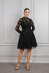فستان سهرة قصير بتفاصيل شفافة وياقة عالية مزين بالخرز من "المجموعة الخاصة" - اسود