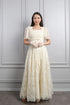 فستان ورود بياقة مربعة واكمام واسعة مع حزام واكسسوار قفازات -سكري