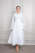تم تصميم فستاننا بتفاصيل دانتيل تمتد من الياقة حتى منطقة الخصر, ليضيف لمسة انثوية وانيقة. تم تحريكه من خلال الاكمام المنتفخة الشفافة, مما يضفي عليه طابعاً عصرياً. الفستان يتماشى بشكل مثالي مع الجسم من الخصر, بينما يقدم الجزء الخلفي مظهراً يشبه الكورسيه بفضل حبل الربط على الظهر. تم استخدام قماش دانتيل على الاكتاف لتكملة المظهر العصري. هذا الفستان سيكون خياراً مثالياً لكم في مناسباتكم الخاصة او دعواتكم.