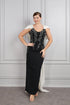 فستان سهرة بياقة بيضاوية كبيرة وتطريز حجري وتفصيل كاب في الجهة الخلفية مقاس كبير -اسود-سكري