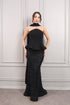 فستان سهرة سترابلس بياقة مائلة, تم تصميم جزئه العلوي من قماش الكريب, بينما تنورته تأتي بقصّة السمكة بتطريزات خرزية لامعة مما يمنحه مظهراً متكاملاً يجمع بين الفخامة والرقي. يكتمل التصميم باكسسوار وشاح حول الرقبة يضفي عليه لمسة عصرية. اختياركم لهذا الفستان في مناسباتكم الخاصة او الدعوات يعد خياراً مثالياً لكم.