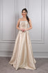 فستان سهرة سترابلس مطرز بالكريستالت بحبل ربط في الخلف -بيج