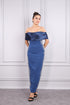 فستان سهرة بدون اكتاف مطرز بالخرز واللؤلؤ -كحلي