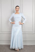 فستان بياقة مربعة مزين بالكريستالات بتفاصيل تنورة شيفون -ازرق
