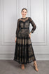 فستان ميدي دانتيل بتفاصيل شفافة واكمام طويلة -اسود
