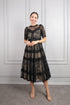 فستان ميدي دانتيل بتفاصيل شفافة واكمام نصفية -اسود